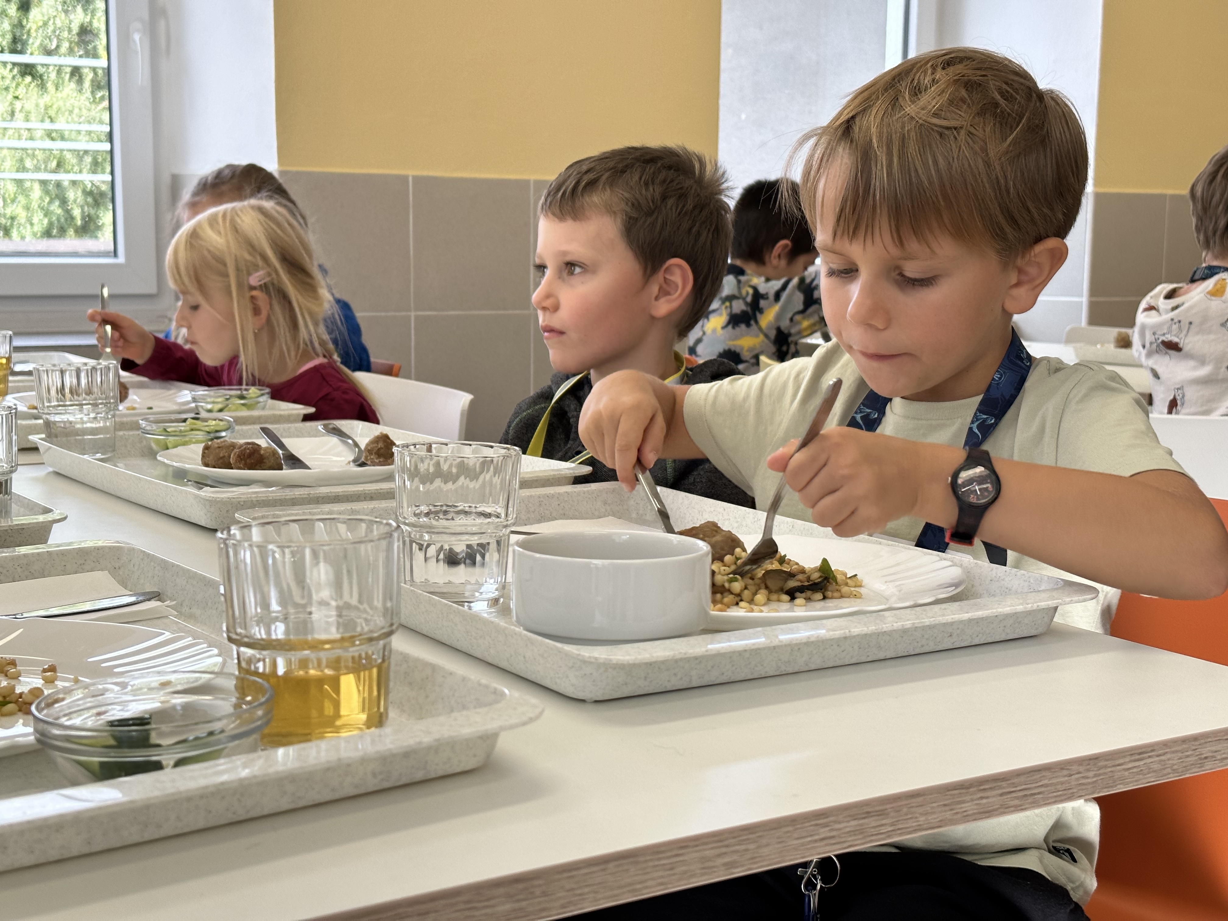 Jako průkopníci zavádíme v Česku samoobslužný model školního stravování, pro který jsme našli inspiraci ve Finsku. Děti si nabírají jídlo samy a podle vystavené vzorové porce si určují množství i skladbu svého oběda. Po konzumaci pak roztřídí zbytky a uloží nádobí do košů myčky. Cílem je naučit malé strávníky větší samostatnosti a odpovědnosti. Děti nejenže méně plýtvají jídlem, učí se principy udržitelného stravování nebo hodnotě potravin, ale díky tomu, že si jdou navzájem příkladem, zkouší i jídla, do kterých by se jinak nepustily.