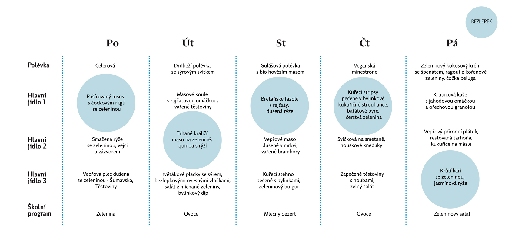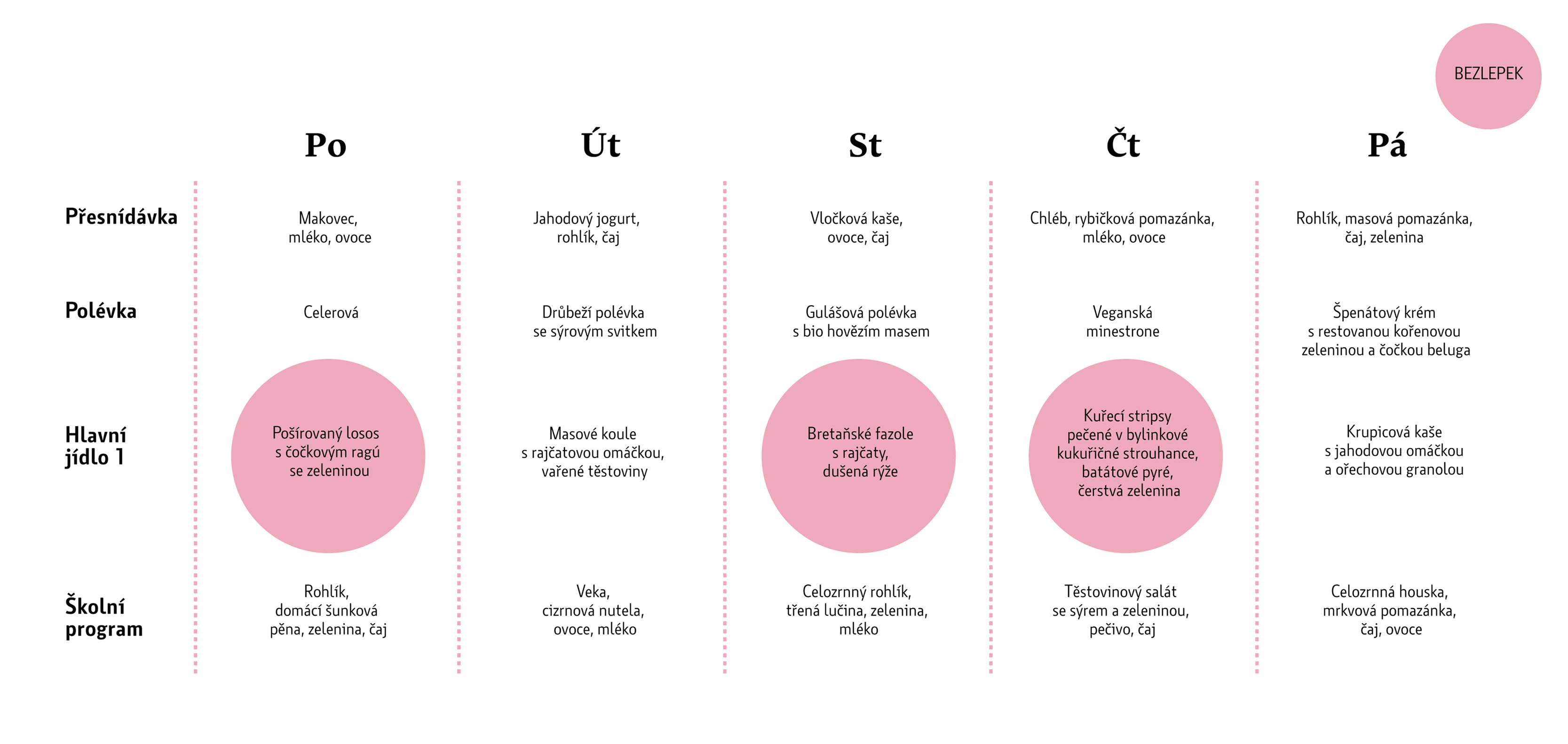 - Denně nabízíme pouze čerstvé snídaně a svačinky z vlastní výroby, které plně vyhovují požadavkům tzv. pamlskové vyhlášky č. 160/2018 Sb.